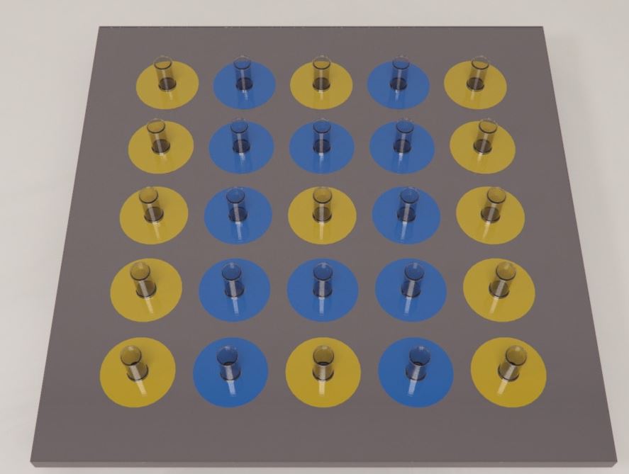 24個の色信号(黄色12個、青色12個)は、上部の透明プレキシグラスを通してミツバチに視認されます。