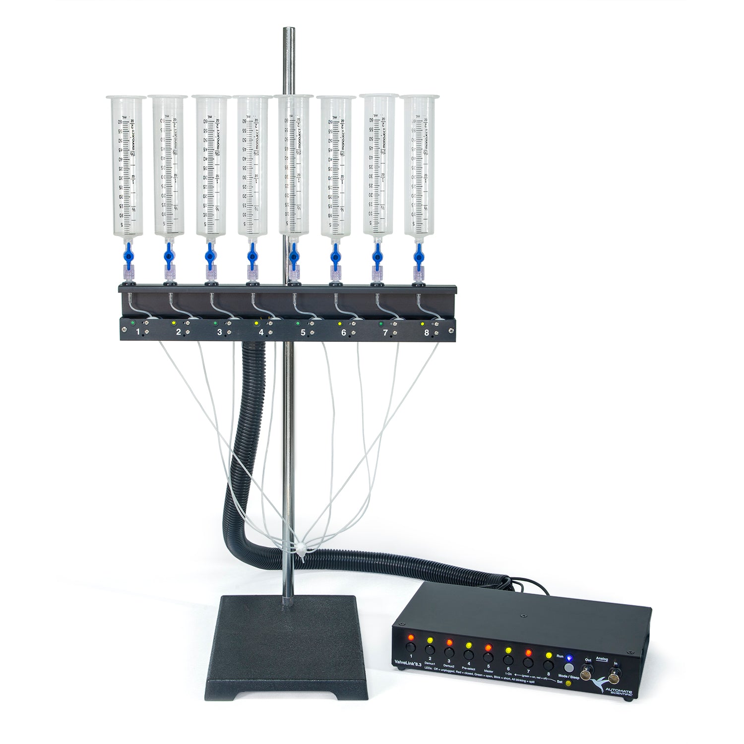 Economy Pinch Valve Perfusion System for real-time or pre-programmed liquid switching in perfusion, physiology, biophysics, electrochemistry, or general liquid-handling research applications